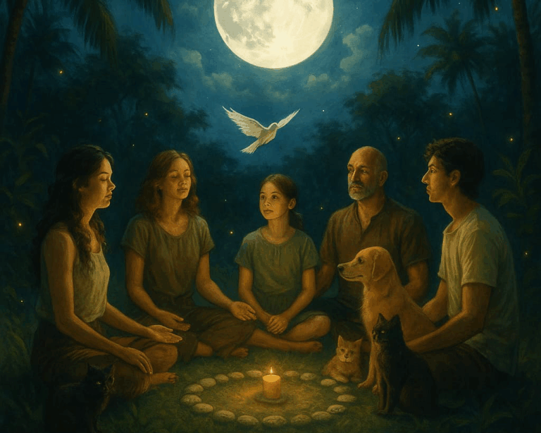 More than a group – it's a breathing field. The Moon Melody Collective is a rhythmical space of resonance and ritual. Whether on WhatsApp or evolving into a Telegram sanctuary, it flows with lunar updates, soul nourishment, dog tales, and intuitive pulses. It’s a living container of remembrance – not a membership, but a moonship.